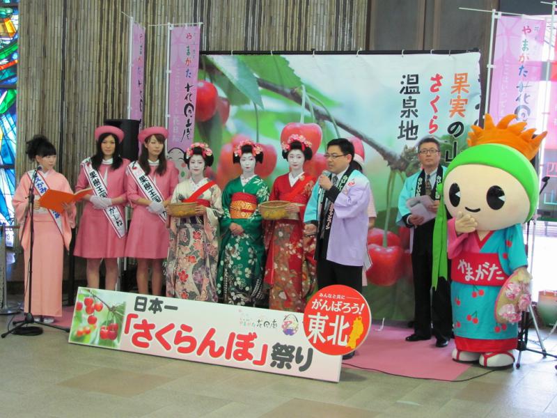 今回は、現在開催中の花回廊キャンペーンのPR、6月から最盛期を迎えるやまがたの味覚「さくらんぼ」のPR、そして、「やまがた元気プロジェクト」で行う日本一「さくらんぼ」祭りとさくらんぼ狩りキャンペーンをPRしました。