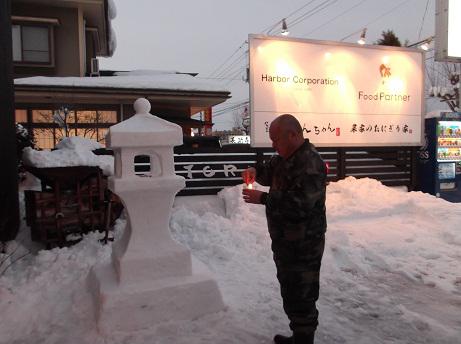 暗がりの中火をともした雪灯篭は、幻想的でますます