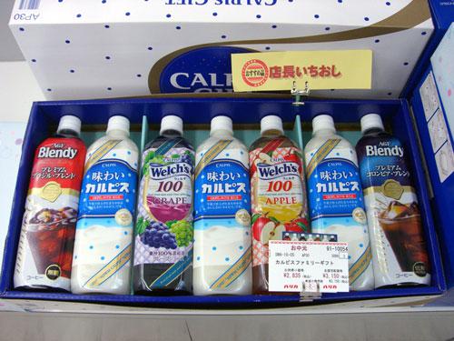 涼しさ満点のカルピスファミリーギフトは夏の贈り物に最適です。当店店長いちおし商品の一つです。商品も残りわずかとなっております。お買い物の際はぜひ、当店にお立ち寄りください。