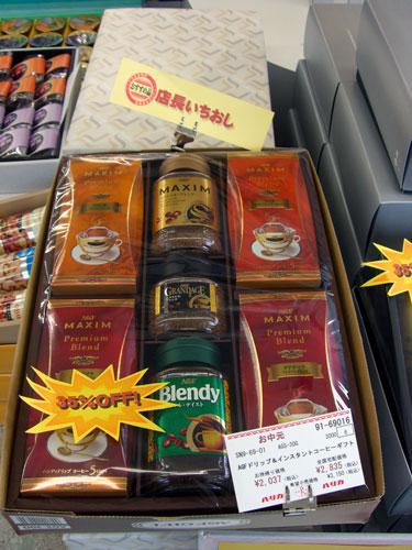 お盆礼には定番の『AGFドリップ&インスタントコーヒーギフト』がおススメです。当店店長のいちおし商品。残りもわずかとなっております。お早めにお求めください。
