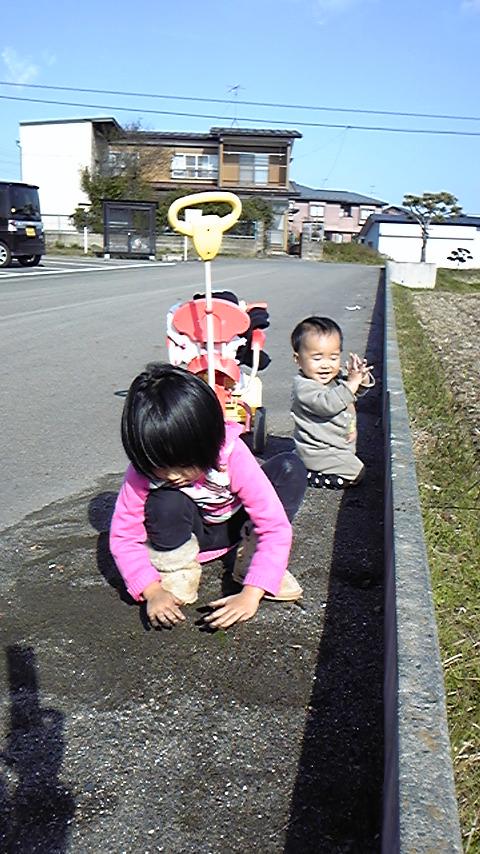 ソラも靴下のまま三輪車押して歩いたり、外でもかまわずハイハイ。