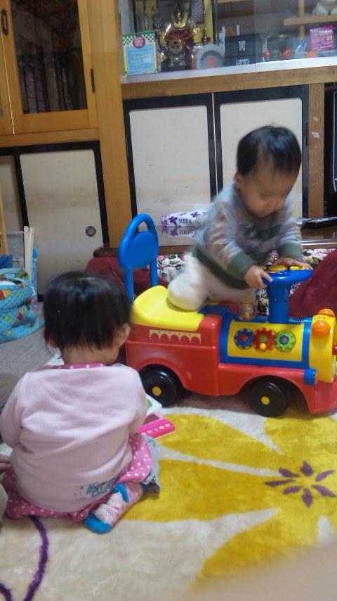 カエデは同い年のいとこと存分に遊び、ソラはこれまた同い年のいとことそれぞれヨチヨチと探索活動!