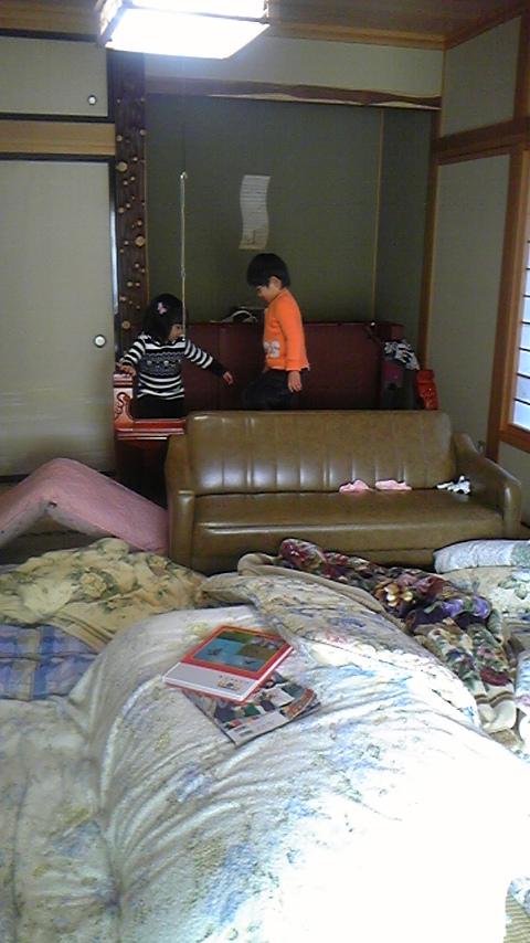いとこと遊んできました。いつも、座敷に布団を敷き詰めて二人で大暴れ!!