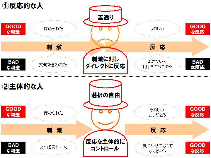 まずは、反応的な人と主体的な人を対比した図です。