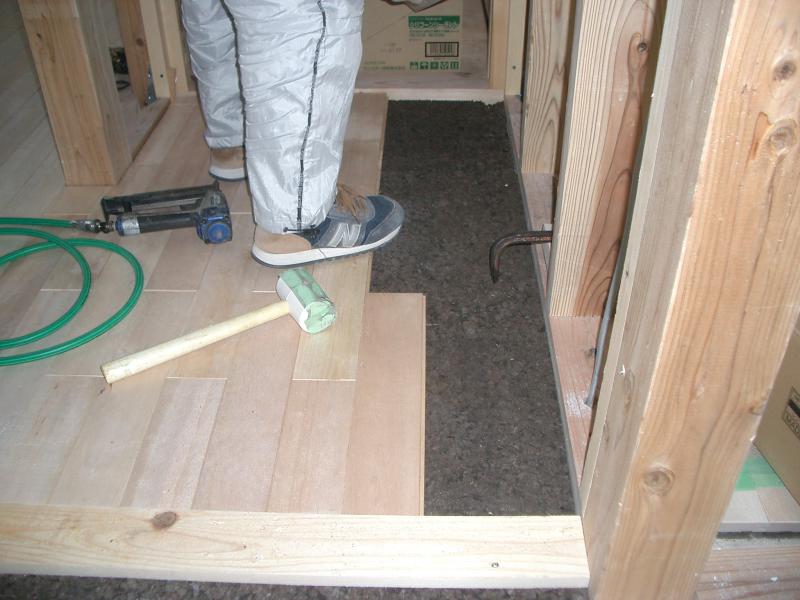 今回も床材の下を紹介します。炭化コルク15oを敷き詰めています。2階の音や振動を軽減します。