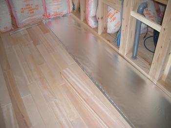無垢フロアーに下にアルミホイルを敷いています。(無添加仕様)
