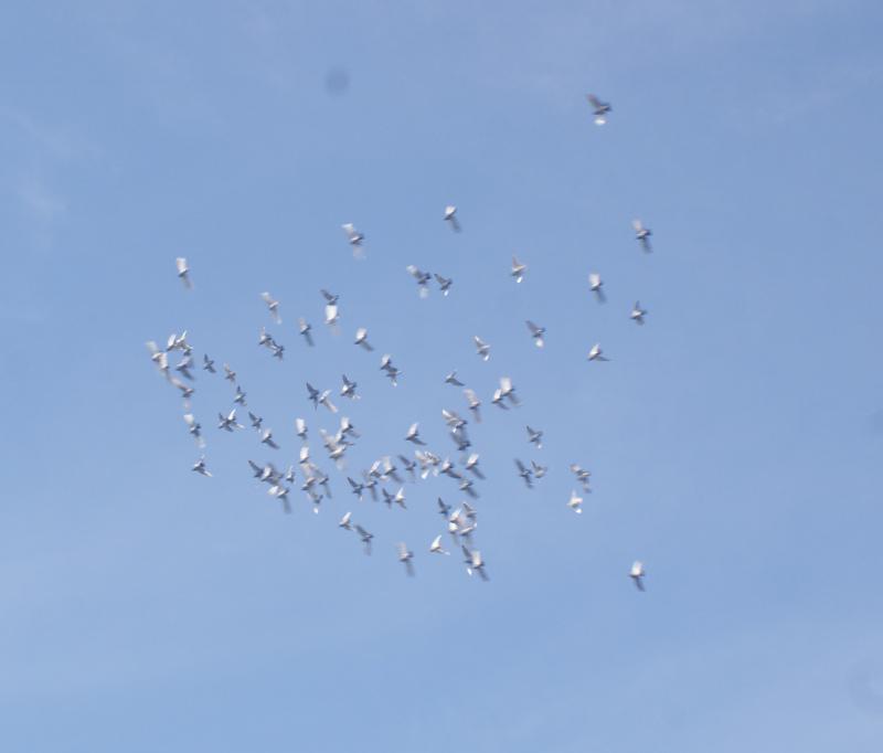 今朝も起きると昨日と同じ雨上がりの曇り空で「舎外日和」だと思って7時過ぎに「第一選手鳩くん」の「舎外」を始めて、一塊で気持ちよく飛んでいたので「隼くん」が出没しないか?周囲を見回していましたが穏やかなので一旦家に戻りました。