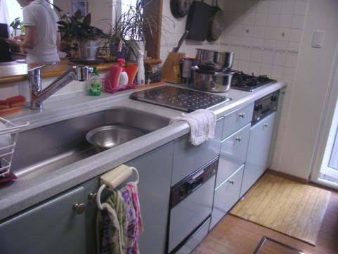 【施工前】15年ぐらい前のシステムキッチン。「もっと使い勝手がよくキッチンのイメージを変えたい」という