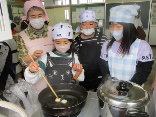 12月10日(水)、3年生の「ごんぼ料理」が行われました。総合的な学習で岡の台ごんぼに関する様々なことを調べてきた子供たちですが、その中の1つにごんぼの料理に関することもありました。当日は健康福祉課の方や健康づくり推進委員東根支部の皆様にご指導を受けながら「酢煮」と「ごぼうのバター醤油ソテー」を作りました。町や地区の方々のお力をお借りして、「自分たちが調べたことを実際にやってみる」という生きた学びが展開できることがとても有難く、生き生きと学ぶ子供たちの様子が見られました。