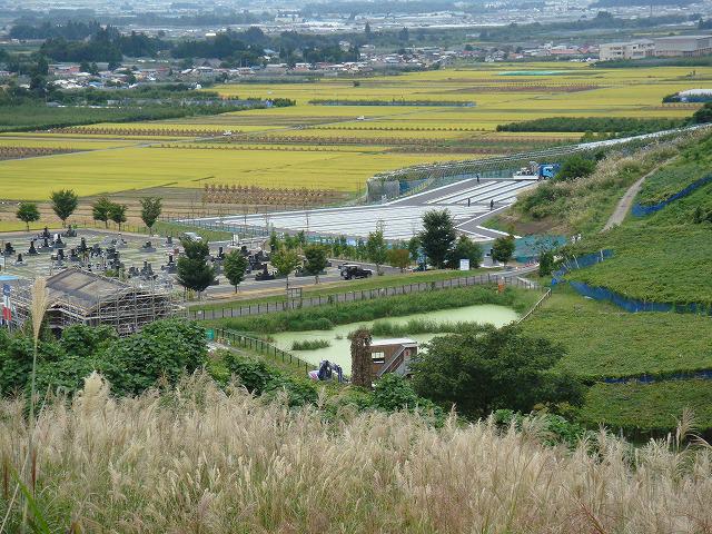 写真手前にはススキ、奥には黄金色の稲穂が見えて秋ならではの風景を撮影しました。