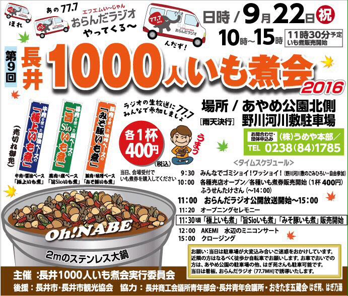 今年も 1000人芋煮会 楽しいイベント満載ですよ。 弊社の玉こんも 特設会場にて販売いたします。来てね!!!