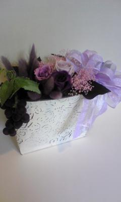 紫の薔薇をメインにした、涼し気なプリザーブドフラワーのアレンジ。これからの時期、生花だとどうしても花持ちが悪くって…。 でも、ブリザードフラワーならそんな心配もなくて楽しめますよo(^-^)o
