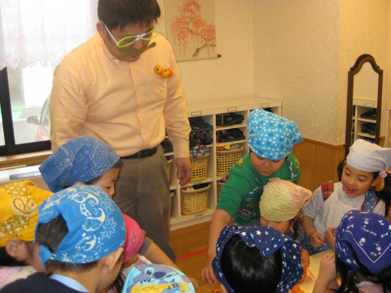 子どもたちの元気な掛け声に呼ばれて、みかん博士の登場です。