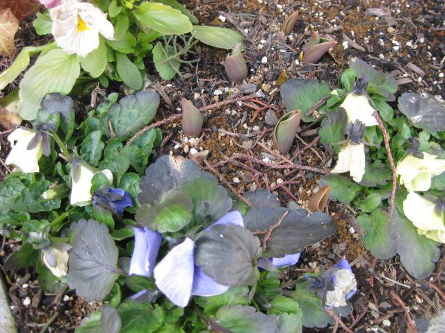 お店の前の植え込みからチューリップの芽が