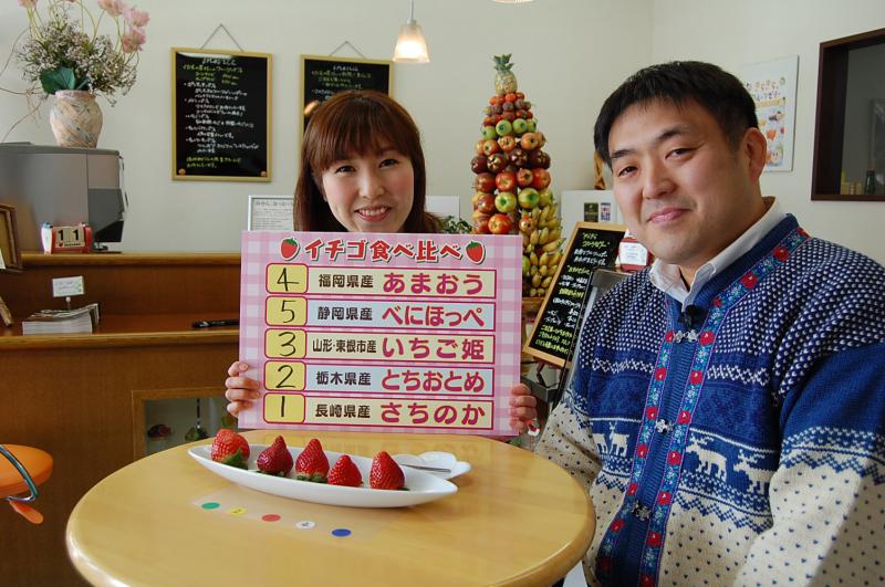 ▼1月16日山形放送「ゴジダス」にていちごの食べ比べ♪