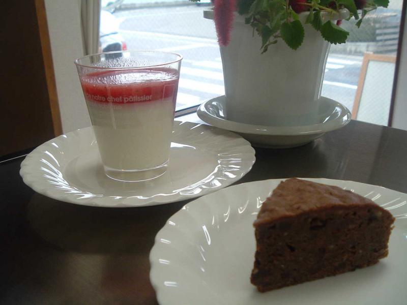 メニューはヨーグルトゼリーとチョコレートケーキ。