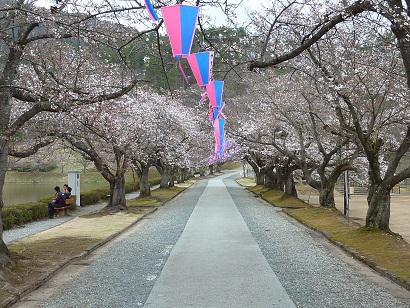 温泉街の東側にある堂の前公園の桜も咲き始め