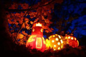▼紅葉の雑木林にかぼちゃランタンで小人の村づくり25th