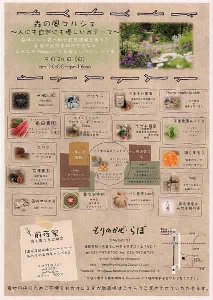 以前にもお世話になった郡山市の「もりのかぜ・らぼ」さんのお誘いで、森の風マルシェに参加することになりました!