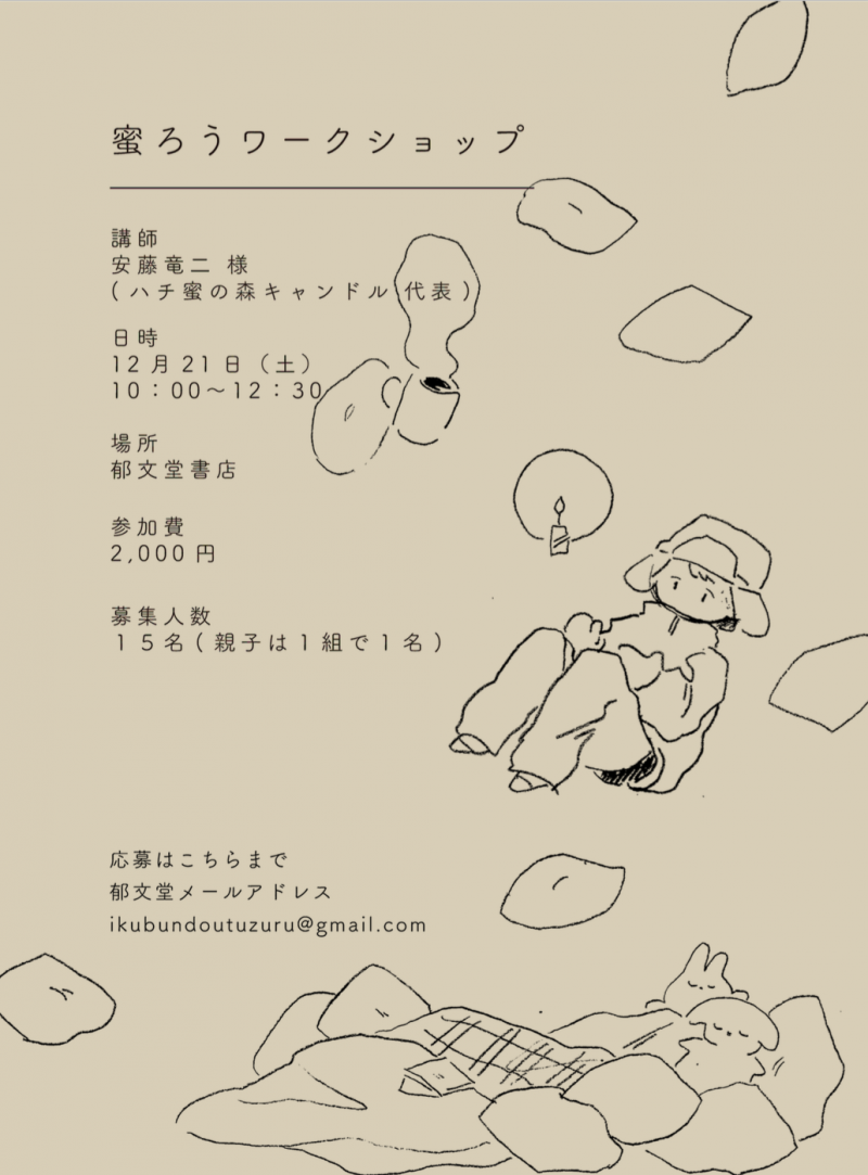 今年も山形市の老舗書店「郁文堂書店」でクリスマスキャンドル作りWSに参ります! 郁文堂をサポートする学生さんたちが毎年計画してくださってます。居心地のいい古いお店で、店主の原田伸子さんともお話しながら、まったりした時間を過ごしましょう😊