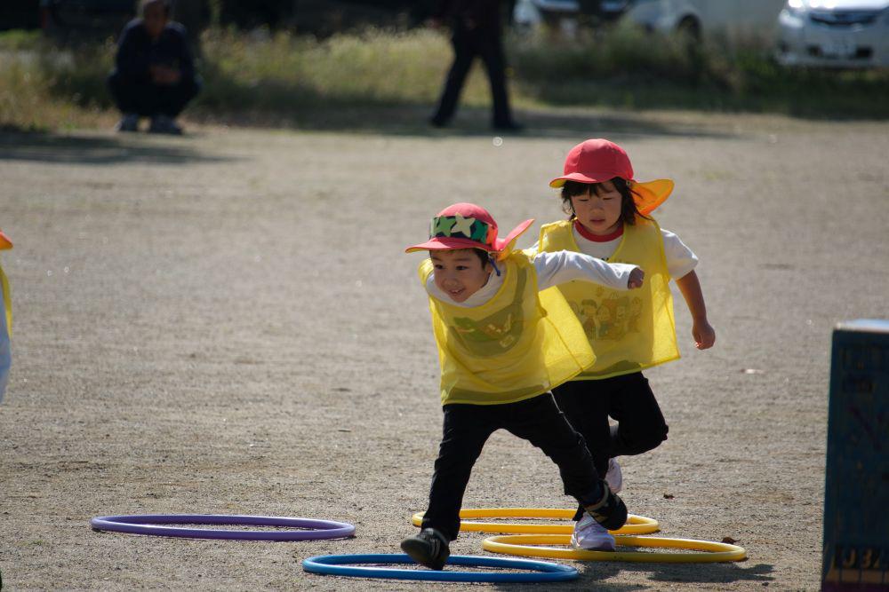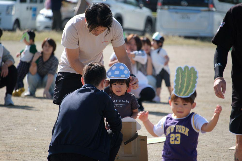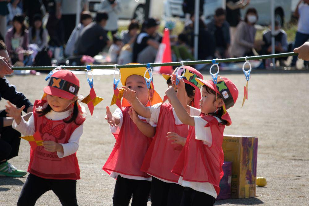 10月4日晴天の下運動会が開催されました。1、2歳児クラスの子どもたちは大好きなお家の方と一緒の競技に、親子共笑顔が溢れていました。幼児組の保護者競技ではクラス対抗綱引きを行いました。一致団結して全力で綱を引く保護者の皆さん、そしてその姿に大きな声で応援する子ども達でした。幼児組は踊りあり、バルーンありとクラスごと思考を凝らした競技が行われました。年長組さんの最終競技チーム対抗リレーでは「勝つぞ!」の気持ちで全力で駆け抜ける姿は圧巻でした。楽しく元気いっぱいの運動会でした。