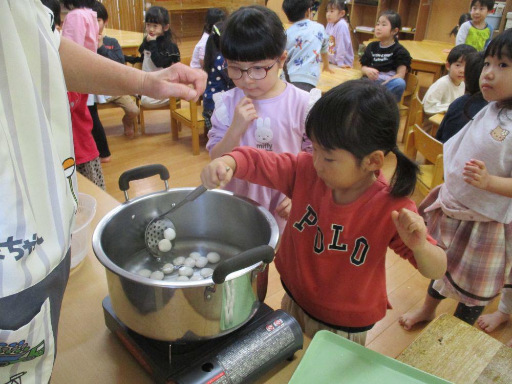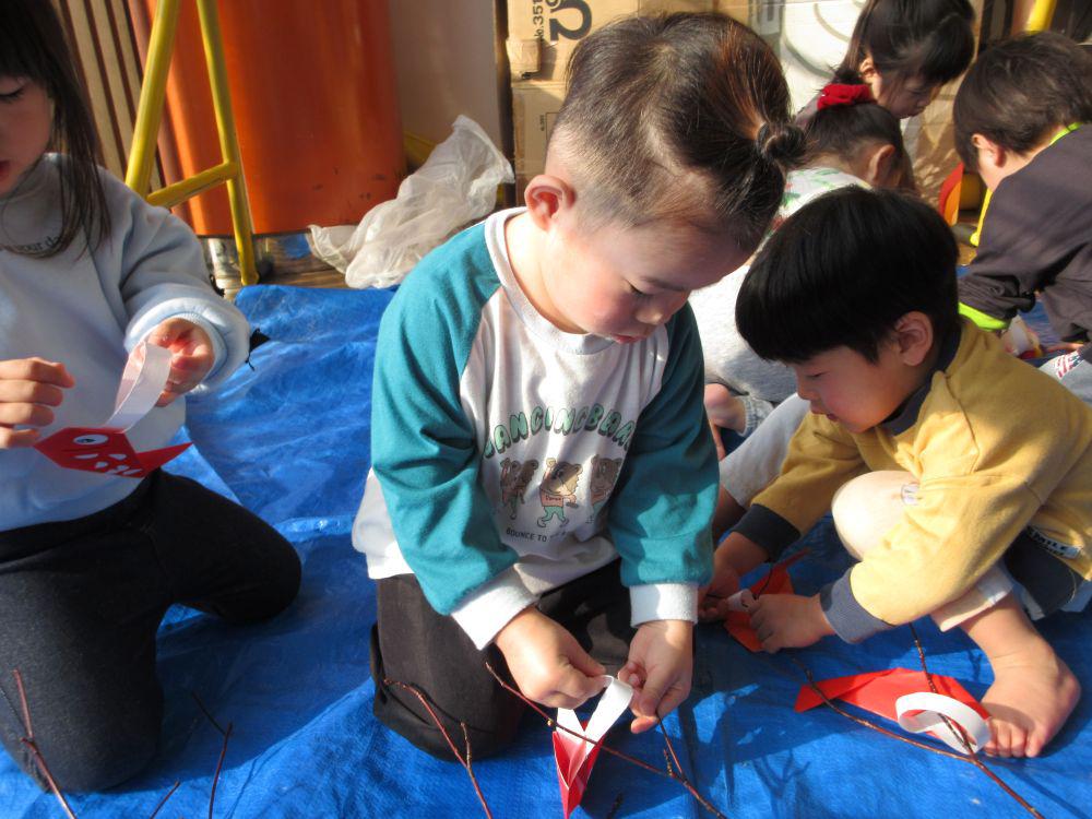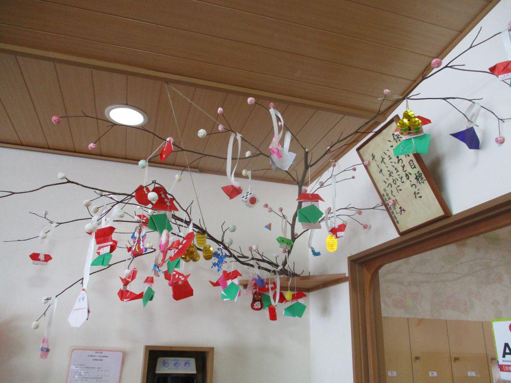 山形の伝統文化である「団子の木飾り」を保育園でも毎年行っています。今年も1/15にミズキの木に様々な願いを込め色とりどりのだんご(白: お友達と仲良く過ごせますように。赤: 一生懸命お勉強や遊びを覚えられますように。黄: お米や野菜などの作物が豊作になりますように。緑:元気で大きくなりますように)を作って飾りました。