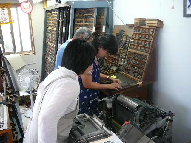 参加者はまつざわ編集長、たかだね〜さん、なかざわの3人、まつざわ編集長となかざわは二度目の活版で、たかだね〜さんは初体験。たかだね〜さんは、色んなところに興味津々でした。