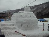 県内でもっとも遅い?大井沢雪まつりが昨日終わりました。たくさんの方々に来ていただいたようです(私は行けませんでした・・・)。遅くなりましたが一昨日「助っ人隊」のみなさんと作った雪像です。なにかわかります?そう!「黒ひげ危機一発」です。脇の階段のぼれば黒ひげくんと一緒に写真がとれます。少し掘ってあるので、子供さんなら上半身が出るくらいです。写真とった人いるかなぁ?