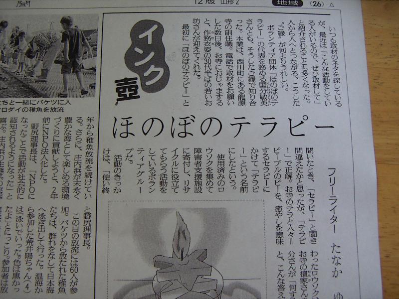 「笑顔」というフリーペーパーを発行している田中さんの記事です。残念ながら西川町内で読売新聞が購入できず、寒河江市内まで買いに行ってきました。