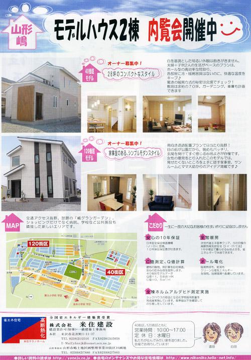 □山形市の嶋地区にてモデルハウス内覧会を開催しております。