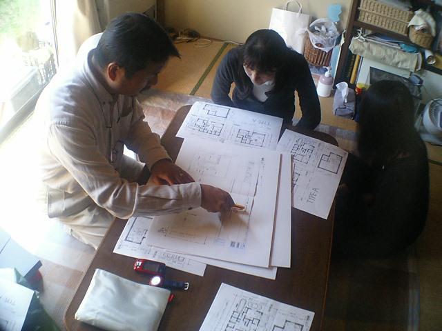 3時過ぎからは、私の自宅にいって長谷川さんが考えてきてくれたプラン3案の説明を妻、娘と一緒に受ける。んー、前回のインタビューを基に、良く考えられたプランになっている。がっ、しかし、予算オーバー。予算的には45坪程度、出来てきたプランは60坪前後。これから優先順位を付けて、削っていく作業となる。