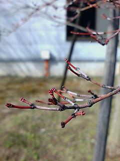 気温や雪解けに春を感じる今日この頃ですが、木々も春を感じて動き出しています。