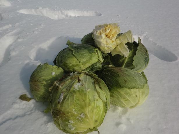 雪が降る前に大きくなったキャベツをそのままに