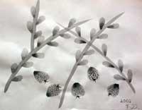 三沢コミュニティーセンターの水墨画教室に、初めて参加しました。写真は私の記念すべき第一作目です。まだ下手なのでなにを書いているのかわからないかもしれませんね。苺とネコヤナギを書いたのです。
