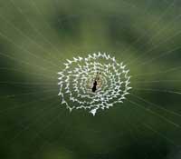 大きく張り巡らされた蜘蛛の巣の写真です。小さな昆虫たちにとっては一度捕まれば、もう動くことができません。