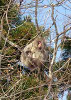 毎年、この時期になると猿が裏山に顔を出します。写真はかわいい子猿です。母親から離れ一人で木に登って遊んでいます。