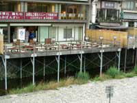 京都では暑くなってきますと、三条から四条にかけての鴨川沿いのお店で、写真のように川床で食事を楽しむことができます。