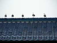 カモメが同じ距離で屋根に並んでいます。なんだかかわいいですよね。