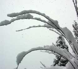 雪をかぶったもみじの木です。細い枝まで山のように雪が積もっていました。これから四ヶ月間は木々も人間も雪のなかでの生活です。おそらくあっという間なのでしょうが春が楽しみです。