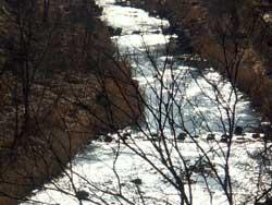 この季節、なかなか写真にできるものがありません。花もなければ、雪もなく、目を引くものがなかなかありません。今日の写真は小野川温泉の鬼面川に光が反射して輝いているところです。平凡な風景もよく見れば美しい風景へと変貌します。