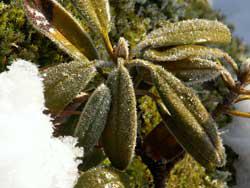 雪の中で寒さに耐えるシャクナゲの写真です。もし、山の木々や花々が言葉を話すようになれば、私たちは山に行こうとは思わなくなるのかもしれません。静かな自然だからこそ、心が落ち着き癒されるのかもしれませんね。