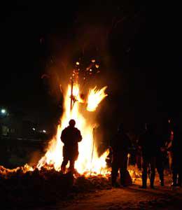 今日の写真は小正月の行事「さいと焼き」です。一年間お世話になったお札やお正月の飾りなどを、地区の人が集まりワラを積んで火をつけ、お炊き上げをする行事です。