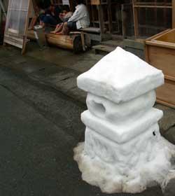 昨日から上杉雪灯篭祭りがはじまったようです。今年は例年にない暖冬でお祭りの規模も縮小になりました。今日の写真は柚雪籠祭りに合わせて小野川温泉で作られた雪灯篭です。これは昨日の写真なのですが、ほとんど雪がなくぽつりと立つ雪灯篭もなんだか寂しそうです。本日は一日雪が降り冬の祭典に相応しくなってきました。