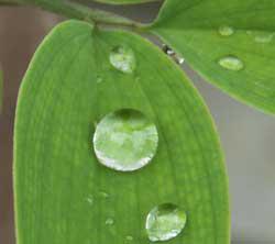 雨上がり、外に出てみると植物の葉に忘れ物のように雫が残っていました。この小さな雫が集まり川となり海へと続いていきます。人間も大勢の中では小さな存在となってしまいますが、一人一人がこの雫のようになくてはならない存在なのだと思います