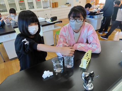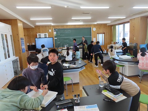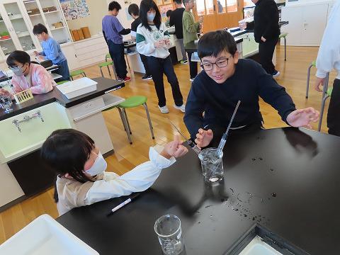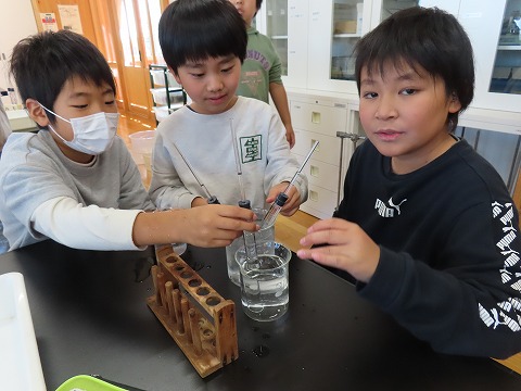 4年生の理科でものの体積と温度の実験をしていました。人数が25人ですが、一人一実験!