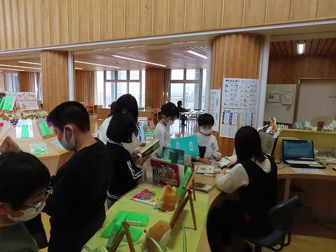 読書活動の様子です。4年生と2年生が本を借りに来ていました。おすすめの本などもあり、それを選んでいる子供たちもいました。