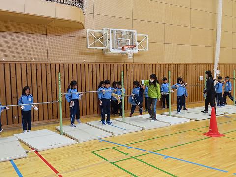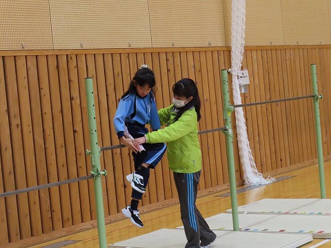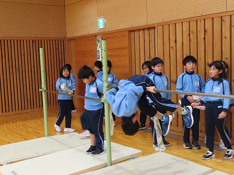 授業の様子では3年生の体育で鉄棒の練習を工夫しながら頑張っていたのでパチリ。