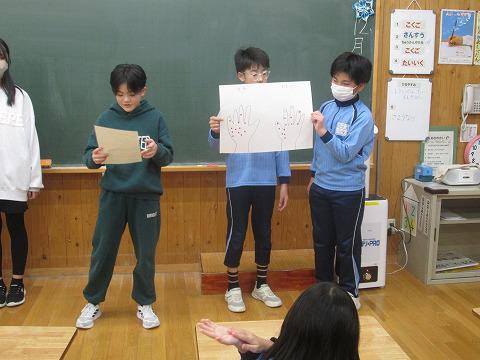 保健室から、健康委員会が主になり、今日まで手洗いピカピカ運動がありました。最終日は1年生。みんなインフルエンザから回復し学校に戻ってきました。おかえり!