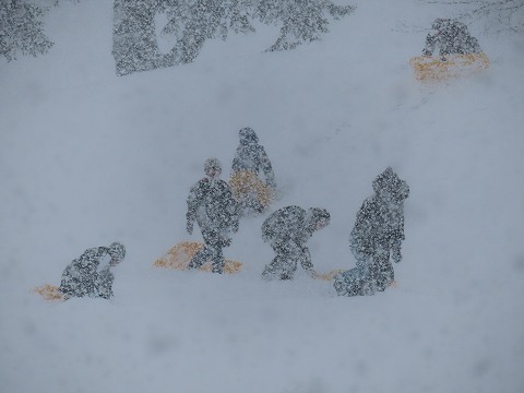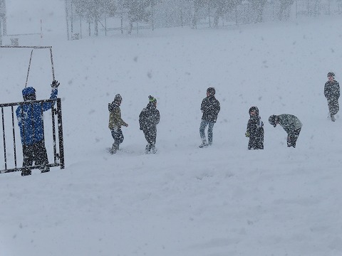 これが雪国の子ども達の姿です。雪がしんしんと降る中、休み時間になるとグラウンドに出ていきます。そりのりをしたり、クロカンの練習をしたり、雪合戦をしたりと、様々な活動をしています。雪を楽しむ素晴らしい子ども達です。