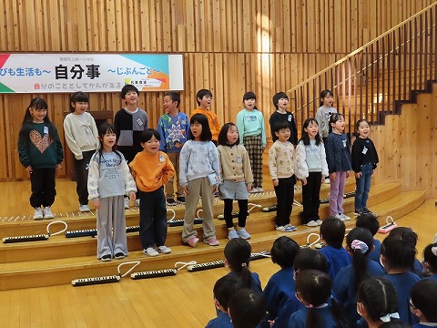 2時間目、1年生とわくわくこども園年長さんとの交流がありました。1年生が立派に会の運営をしていました。